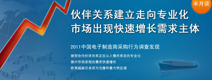 缺貨危機過后,中國電子系統制造商和電子元器件供應商對風險共擔、利益共享的伙伴關系有了新的理解。 2011中國電子制造商采購行為調查發現,在供應商認證與引入過程中建立了系統流程并很好實施的比例顯著增加;讓供應商參與早期產品設計的比例顯著增加;培養供應商的比例顯著增加。合作伙伴關系建立正在從人情關系走向更加專業化和系統化。此外,新興市場在新型伙伴關系基礎上呈現出需求快速增長。