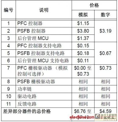 無論在PFC 級(jí)中使用或者未使用外部MOSFET 柵極驅(qū)動(dòng)器,表1 中列出了不同模擬電源的所有BOM 成本。
