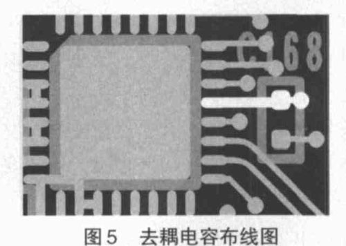 (4 )添加去耦電容。去耦電容可以消除高頻干擾,由于電容器的容抗與頻率成反比,因此將電容并聯在信號與地線之間就起到對高頻噪聲的旁路作用。原則上將每個集成芯片都加上一個0.01mF~ 0.1mF 的陶瓷片電容,不僅能使芯片存儲能量,提供和吸收該芯片的電路開門和關門瞬間的充放電能,還能旁路過濾掉該器件的高頻噪聲成分。在電源輸入端加上一個10mF~100mF 的電解電容(最好是鉭電容),可以抑制電源的噪聲干擾,當然加入的電容引線不能太長,因為電容的引線長度是一個十分重要的參數,引線越長,則感應電感越大,電容的諧振頻率就越低,對高頻噪聲的頻率過濾作用就會減弱,甚至消失,因此在高速PCB 板設計時,要特別注意使電容器的引線盡量短,也就是使得電容盡可能地靠近芯片。