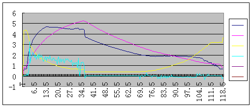 注:深藍—輸入軸轉速,黃—節氣門開度,紫紅—發動機轉速,淺藍—電磁離合器電流