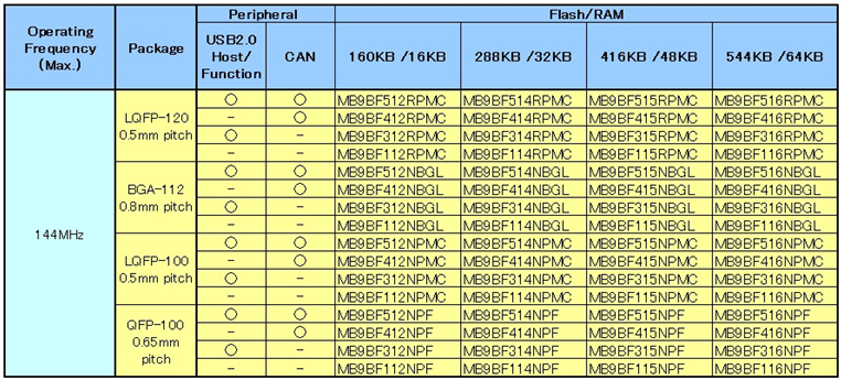 高性能產品組:MB9B510R/410/310/100系列