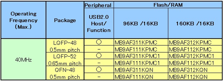 基本產品組:MB9A310K/110系列