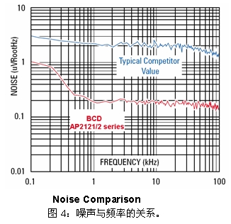 當(dāng)然也有例外,個(gè)別歐美的大廠商采用先進(jìn)的工藝設(shè)計(jì)生產(chǎn)的的CMOS LDO把本該外面加的Bypass電容做到了芯片里面,這樣的LDO產(chǎn)品的噪聲約為100 uVrms的水平。