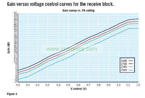 圖3:接收模塊增益隨電壓控制變化的曲線圖