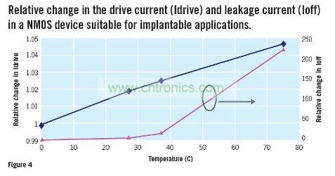 圖4:NMOS設(shè)備中漏電流與驅(qū)動電流隨溫度變化