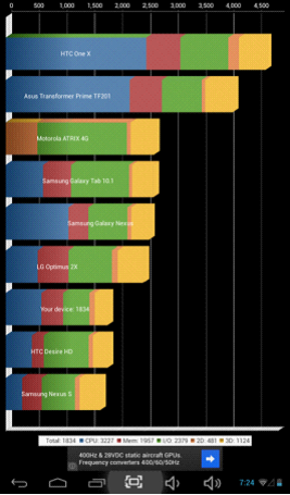 AnTuTu Benchmark是一個專門給Android設備的手機、平板電腦硬體打分的軟件,,通過“內存性能”、“CPU整數性能”,“CPU浮點性能”、“2D、3D繪圖性能”、“數據庫IO”、“SD卡讀、寫速度” 等性能測試對手機的硬體性能做出評分。