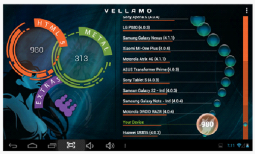 Vellamo跑分對比 (上為RK3168,下為全志A20)