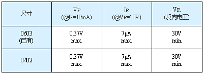 <0402(0.4mm×0.2mm)尺寸的肖特基勢壘二極管>
