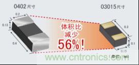 與以往的0402尺寸產品相比,尺寸成功減少了56%(體積比)