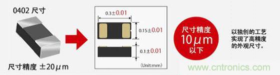 1.采用獨創的工藝技術,實現世界最小※的03015尺寸(0.3 mm×0.15 mm)