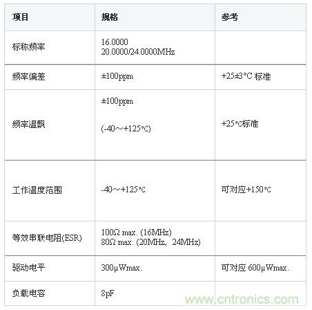 現在的車載ECU間的通信中最常用的CAN是經ISO11898和ISO11519-2認證的通信規格,最大通信速度可達1Mbps。這里所使用的時鐘設備的精度是由可達到ECU間的通信標準的配備條件來決定的,一般來說±3,000ppm精度的話是不會產生使用上的問題。