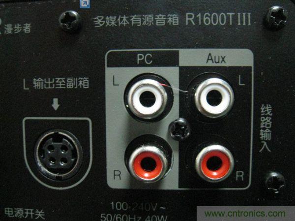 左邊是連接高音,中間是電源,右邊是低音連接。