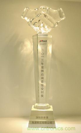 【導(dǎo)讀】近日,在浙江大華舉辦2013年供應(yīng)商大會(huì)上,世強(qiáng)憑借其優(yōu)異的產(chǎn)品品質(zhì)、出色的技術(shù)服務(wù)水平和及時(shí)的交付能力,繼上一年的“優(yōu)秀供應(yīng)商”后再度獲得了由大華頒發(fā)的“最佳交付獎(jiǎng)”。