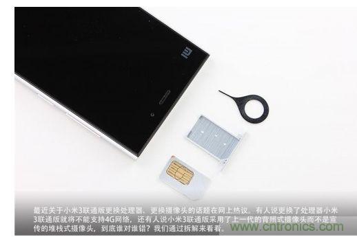 聯通版小米3在上市之后接連遭遇了更換攝像頭和處理器的風波當中,有人說更換了處理器的小米3就不能支持4G網絡了,還有人說小米3用的是上一代背照式攝像頭而不是宣傳的堆棧式攝像頭,到底這些說法正確嗎?我們通過拆解來看一看吧。