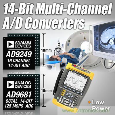 【導讀】ADI最近發布了兩款14位模數轉換器AD9249和AD9681,能以同類產品中的最小封裝尺寸提供最低功耗。8/16通道模數轉換器突破工業、醫療和通信設計中的空間限制。