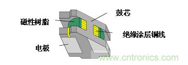 上述LQH系列在鼓芯外面纏繞的絕緣涂層銅線的周圍,應用的磁性樹脂起到了減少漏磁通、保護絕緣涂層銅線,提高產品強度的作用。構造概論如圖2所示。