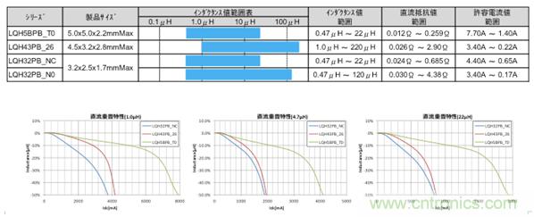 表1,車載信息設備用功率電感LQH**PB系列的產品概要