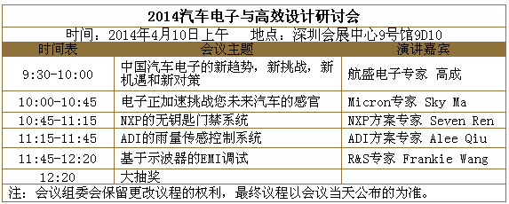 1.汽車(chē)電子和高效設(shè)計(jì)研討會(huì)(4月10日上午,深圳會(huì)展中心9號(hào)館9D10)