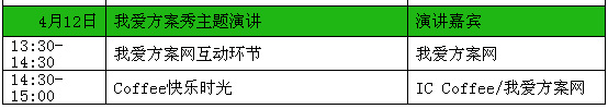 我愛(ài)方案網(wǎng)聯(lián)手中國(guó)電子分銷(xiāo)商聯(lián)盟,中國(guó)電子展和電子元件技術(shù)網(wǎng), 以激發(fā)設(shè)計(jì)靈感,力推中國(guó)原創(chuàng)為宗旨, 在2014中國(guó)電子展(中國(guó)電子信息博覽會(huì),4月10日-12日)期間推出六大熱點(diǎn)活動(dòng),服務(wù)中國(guó)的原創(chuàng)設(shè)計(jì),助力中國(guó)電子信息產(chǎn)業(yè)的騰飛!中國(guó)電子行業(yè)最具人氣的交流創(chuàng)新平臺(tái)IC咖啡為此次活動(dòng)的支持單位。歡迎現(xiàn)場(chǎng)偶遇知芯人。
