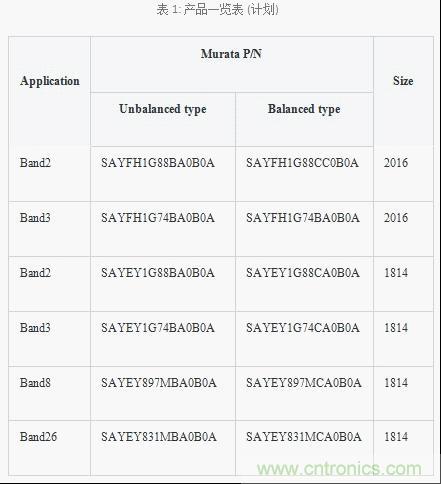 村田制作所的TC-SAW產(chǎn)品陣容