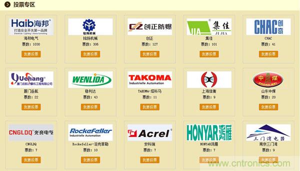 “2014第二屆電氣行業(yè)網(wǎng)絡(luò)十大品牌評(píng)選活動(dòng)”由中國(guó)工業(yè)電器網(wǎng)主辦,是電氣行業(yè)發(fā)展的風(fēng)向標(biāo),投票環(huán)節(jié)9月1日開啟。廣大網(wǎng)友可繼續(xù)通過中國(guó)工業(yè)電器網(wǎng)網(wǎng)絡(luò)投票系統(tǒng),向自己熟悉的、喜歡的電氣企業(yè)投上寶貴的一票,共同見證下一個(gè)電氣行業(yè)網(wǎng)絡(luò)十大品牌的誕生!