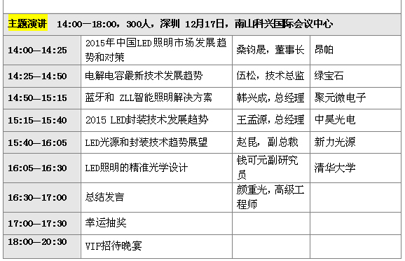 其它我就不多說,請看下面最新的研討會議程,歡迎大家撥冗前來與各位專家教授研討,共商中國LED照明產業健康發展之道。