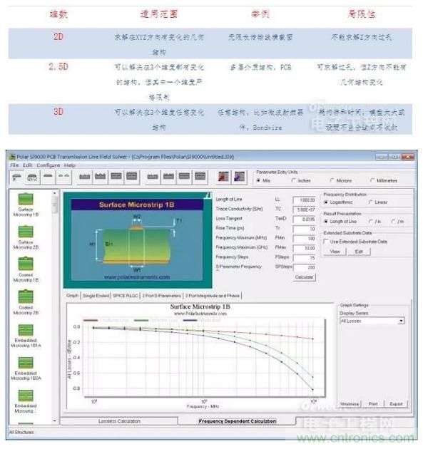 電子產品設計中,對于不同的結構和要求,可能會用到不同的電磁場求解器。電磁場求解器(Field Solver)以維度來分:2D、2.5D、3D;逼近類型來分:靜態、準靜態、TEM波和全波。