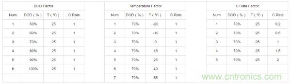在循環測試上可以根據DOD、溫度、倍率這三個重要影響因素設計一組“單因素實驗”。