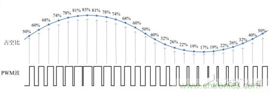 脈沖寬度調制(PWM)是一種對模擬信號進行數字編碼的方法。通過高分辨率計數器的使用,方波的占空比被調制用來對一個具體模擬信號進行編碼。PWM信號仍然是數字的,因為在給定的任何時刻,滿幅值的直流供電要么完全有(ON),要么完全無(OFF)。電壓或電流是以一種通(ON)或斷(OFF)的重復脈沖序列被加到模擬負載上去。通的時候即是直流供電被加到負載上的時候,斷的時候即是供電被斷開的時候。只要帶寬足夠,任何模擬值都可以使用PWM進行編碼。而占空比就是高電平持續時間與整個周期時間的比值,占空比越大,高電平持續的時間越長,模擬電路開通的時間就越長,如圖1所示。