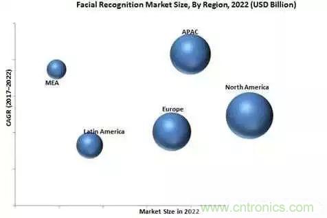 據Yole數據顯示,全球人臉識別市場規模預計將從2017年的40.5億美元增長至2022年的77.6億美元,這期間的復合年增長率可達13.9%。推動市場增長的主要因素包括:iPhone X帶動更多智能手機集成3D人臉識別,公共場所日益增長的監控需求,以及政府部門等各個產業對人臉識別技術的應用增長。