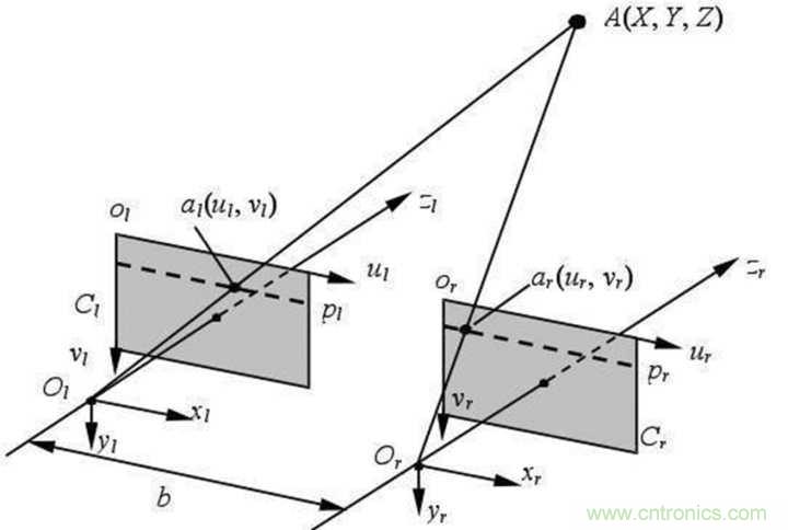 雙目視覺的基本原理是利用兩個平行的攝像頭進(jìn)行拍攝,然后根據(jù)兩幅圖像之間的差異(視差),利用一系列復(fù)雜的算法計(jì)算出特定點(diǎn)的距離,當(dāng)數(shù)據(jù)足夠時還能生成深度圖。