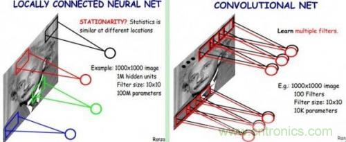 了解了神經(jīng)網(wǎng)絡(luò)后,現(xiàn)在我們回到人臉識別中來。每一層神經(jīng)元就是一個f函數(shù),上面的四層網(wǎng)絡(luò)就是f1(f2(f3(f4(x))))。然而,就像上文所說,照片的像素太多了,全連接網(wǎng)絡(luò)中任意兩層之間每兩個神經(jīng)元都需要有一次計算。特別之前提到的,復(fù)雜的分類依賴于許多層函數(shù)共同運算才能達到目的。當(dāng)前的許多網(wǎng)絡(luò)都是多達100層以上,如果每層都有3*100*100個神經(jīng)元,可想而知計算量有多大!于是CNN卷積神經(jīng)網(wǎng)絡(luò)應(yīng)運而生,它可以在大幅降低運算量的同時保留全連接網(wǎng)絡(luò)的威力。