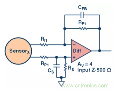 第三級,將結果形成的通道信號施加到單位增益緩沖級放大器 (圖4)。使用電阻是為了減少輸入偏置電流不平衡。