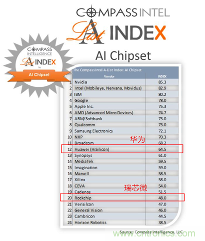 在全球前20名的AI芯片企業(yè)排名表中,中國大陸占據(jù)兩個(gè)席位,分別是華為和瑞芯微,下面我們從他們的產(chǎn)品布局與生態(tài)鏈戰(zhàn)略來看看上榜的理由。