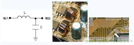 電 感在電路最常見的作用就是與電容一起,組成LC濾波電路。我們已經(jīng)知道,電容具有“阻直流,通交流”的本領(lǐng),而電感則有“通直流,阻交流”的功能。如果把 伴有許多干擾信號的直流電通過LC濾波電路(如圖),那么,交流干擾信號將被電容變成熱能消耗掉;變得比較純凈的直流電流通過電感時,其中的交流干擾信號 也被變成磁感和熱能,頻率較高的最容易被電感阻抗,這就可以抑制較高頻率的干擾信號。
