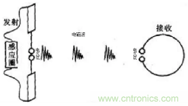 赫茲把這個接收器放在了離電磁波生成器10米遠(yuǎn)的地方,如果真有電磁波的話,導(dǎo)線接收之后將會產(chǎn)生電流,并在這兩個小銅球之間也產(chǎn)生電火花。
