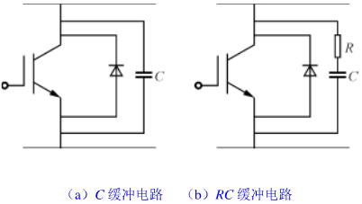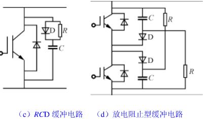 (2)RC緩沖電路如圖4(b)所示,其特點是適合于斬波電路,但在使用大容量IGBT時,必須使緩沖電阻值增大,否則,開通時集電極電流過大,使IGBT功能受到一定限制。