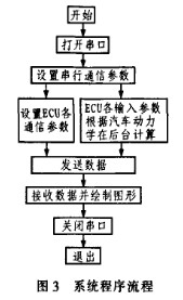 計(jì)算機(jī)通過串行口向發(fā)動(dòng)機(jī)ECU發(fā)送數(shù)據(jù),采集到ECU噴油和點(diǎn)火輸出信號,通過串行口將這些數(shù)據(jù)傳給計(jì)算機(jī)。計(jì)算機(jī)接收數(shù)據(jù)并繪制圖形。