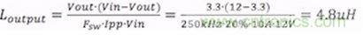 雖然輸出電感并不是影響輸出阻抗的主要因素,但使用合適的值也非常重要。電感值與紋波電流之間的關(guān)系是: