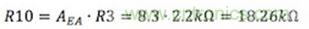 首先,將R3從3.74KΩ改變?yōu)?.2KΩ,得到想要的3.37V輸出。然后由R10和R3的比值確定誤差放大器增益。