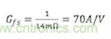 至此我們已經(jīng)完成了大半的電壓調(diào)節(jié)器模塊(VRM)設(shè)計(jì),還需要一次計(jì)算來確定基本的VRM特性——跨導(dǎo)。電流模式轉(zhuǎn)換器是最簡單的實(shí)現(xiàn)方式,因?yàn)樗鼙槐硎緸榭鐚?dǎo)方塊。VRM的輸出阻抗與跨導(dǎo)(Gfs)直接相關(guān),關(guān)系式是: