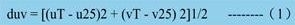 其中:(u25, v25)=1976 CIE u, v在25oC時(shí)的色度座標(biāo);