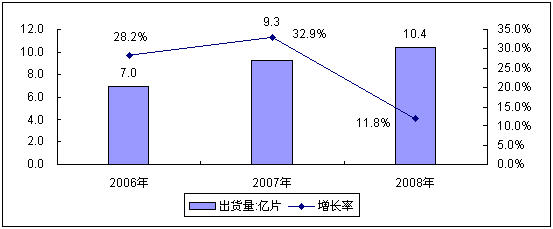 - 2008年,中國(guó)中小尺寸液晶面板共出貨10.4億片,同比增長(zhǎng)11.8%