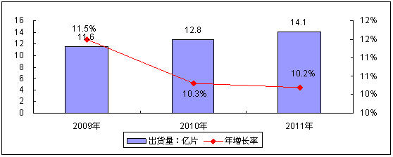 圖2 2009-2011年中國(guó)中小尺寸液晶面板出貨量規(guī)模預(yù)測(cè)