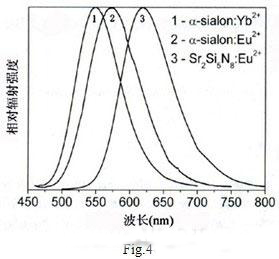 [page]2007年日本材料科學研究所納米陶瓷中心得到的結果是最高的[3],他們采用中心波長為450nm的InGaN藍光LED和光子轉換效率高、在450nm藍光范圍 有強吸收峰、溫度系數低的三種熒光粉進行了試驗,這三種熒光粉分別為:α-sialon: Yb2+、α-sialon: Eu2+和Sr2Si5 N8: Eu2+。這些熒光粉的特點是發光效率的熱衰減較小,在
