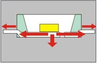 傳統(tǒng)的貼片產品熱傳導路線及方式如下圖2: