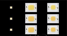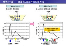 - 第一類在底板上配備多個LED芯片,輸入功率為0.5W時(shí)實(shí)現(xiàn)了38lm,顯色指數(shù)為85