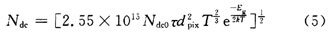 對(duì)于CCD圖像傳感器而言,導(dǎo)致暗白點(diǎn)、白色損傷或顆粒的原因是由于光電二極管的暗電流,這也是決定畫質(zhì)最重要的因素。固定圖像噪聲的起因是各像素中暗電流不均勻,即使沒有入射光一樣會(huì)發(fā)生,它與噪聲信號(hào)電壓的儲(chǔ)存時(shí)間成正比,并具有與溫度密切相關(guān)的性質(zhì),如式(5)所示: