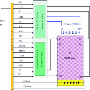 從TFT-LCD的切面結構圖(圖1)可以看到LCD是由二層玻璃基板夾住液晶組成的,形成一個平行板電容器,通過嵌入在下玻璃基板上的TFT對這個電容器和內置的存儲電容充電,維持每幅圖像所需要的電壓直到下一幅畫面更新。液晶的彩色都是透明的必須給LCD襯以白色的背光板上才能將五顏六色表達出來,而要使白色的背光板有反射就需要在四周加上白色燈光。因此在TFT-LCD的底部都組合了燈具,如CCFL或LED。