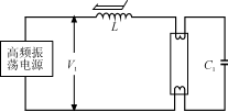 電子鎮(zhèn)流器的啟動電壓是由限流電感L和啟動電容C1組成的L-C1串聯(lián)諧振電路在C1兩端產(chǎn)生的諧振電壓。簡化電路如圖1所示。L-C1的品質(zhì)因數(shù)Q=1/ωC1R=ωL/R,式中R為L-C1回路的損耗電阻,ω為L-C1回路的工作角頻率。在L-C1回路對高頻振蕩電路的輸出電壓V1諧振時,限流電感L或C1上的電壓VR=QV1。合理設(shè)計限流電感L和電容C1的參數(shù),可使C1上的諧振電壓VR達(dá)到使燈管點(diǎn)亮的值。陰極不進(jìn)行預(yù)熱的電路,電源一接通燈即點(diǎn)亮,這對陰極損傷很厲害,會使燈管根部很快變黑,使燈管壽命變短。